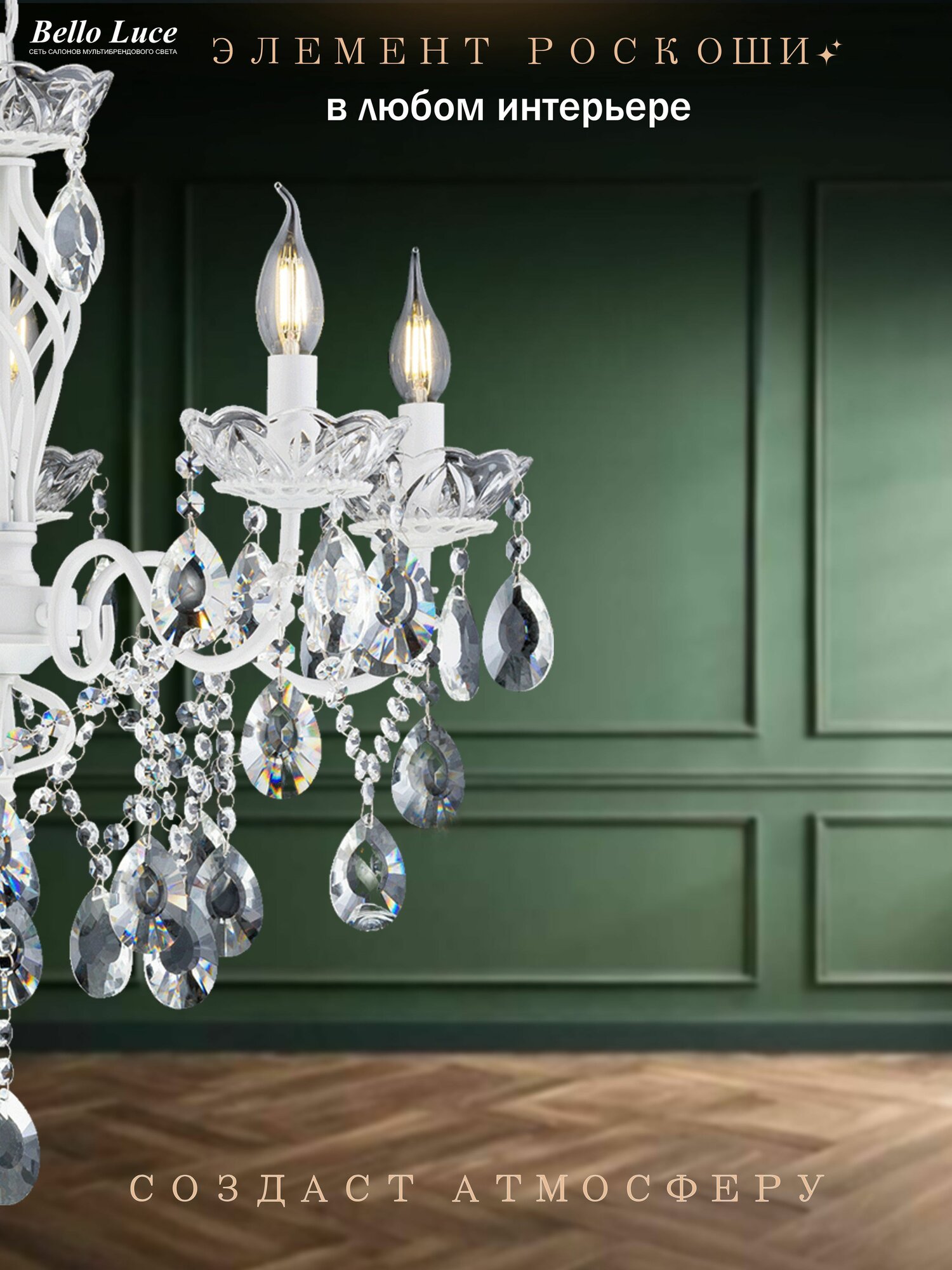 10 цен на Люстра хрустальная Классика белая подвесная с прозрачными хрустальными подвесками на 5 ламп E14, регулировка по высоте