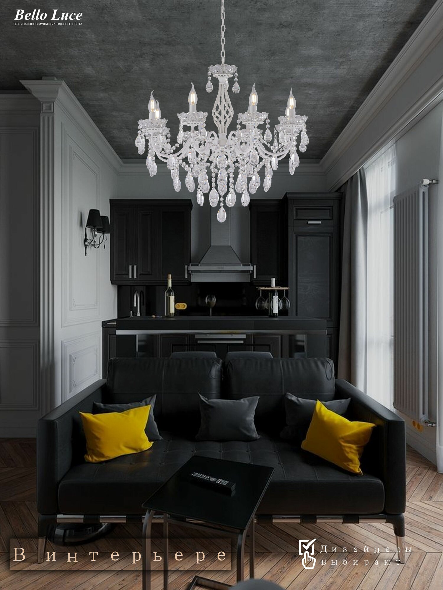 Отзывы на Люстра хрустальная Классика белая подвесная с прозрачными хрустальными подвесками на 8 ламп E14, регулировка по высоте