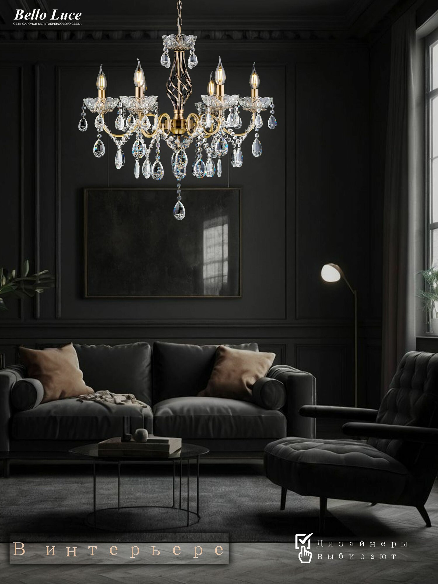 Отзывы на Люстра хрустальная Классика античная бронза подвесная с прозрачными хрустальными подвесками на 6 ламп E14, регулировка по высоте