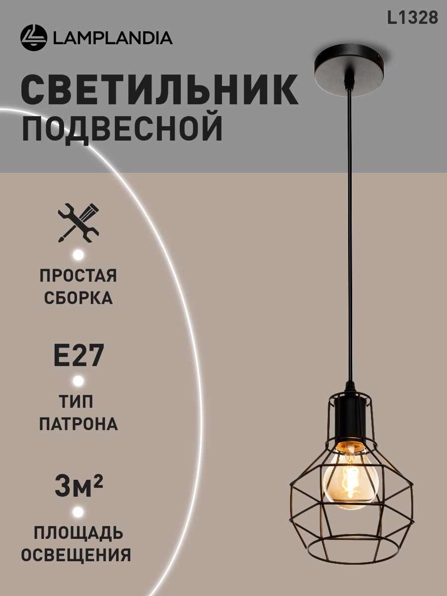 Светильник подвесной Lamplandia L1328 IVIKA, E27*1 макс 40Вт информация:
