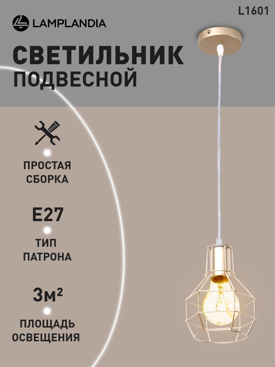 10 цен на Светильник подвесной Lamplandia L1601 IVIKA GOLD, E27*1 макс 40Вт