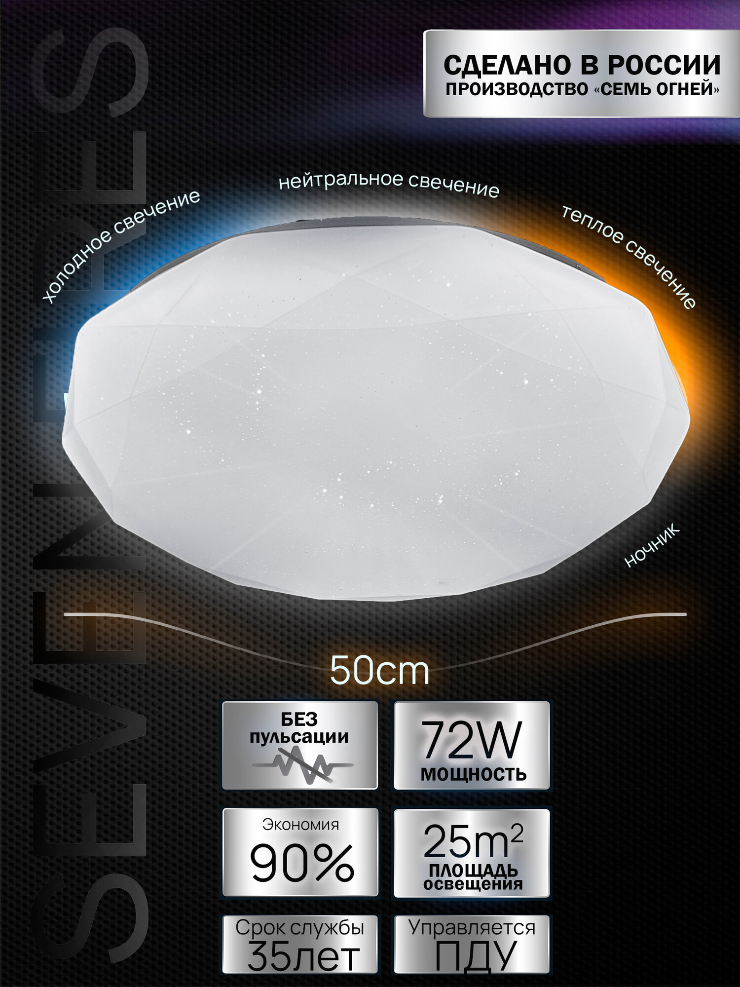 Люстра потолочная светодиодная Семь Огней, белая с пультом, до 25 кв. м. информация: