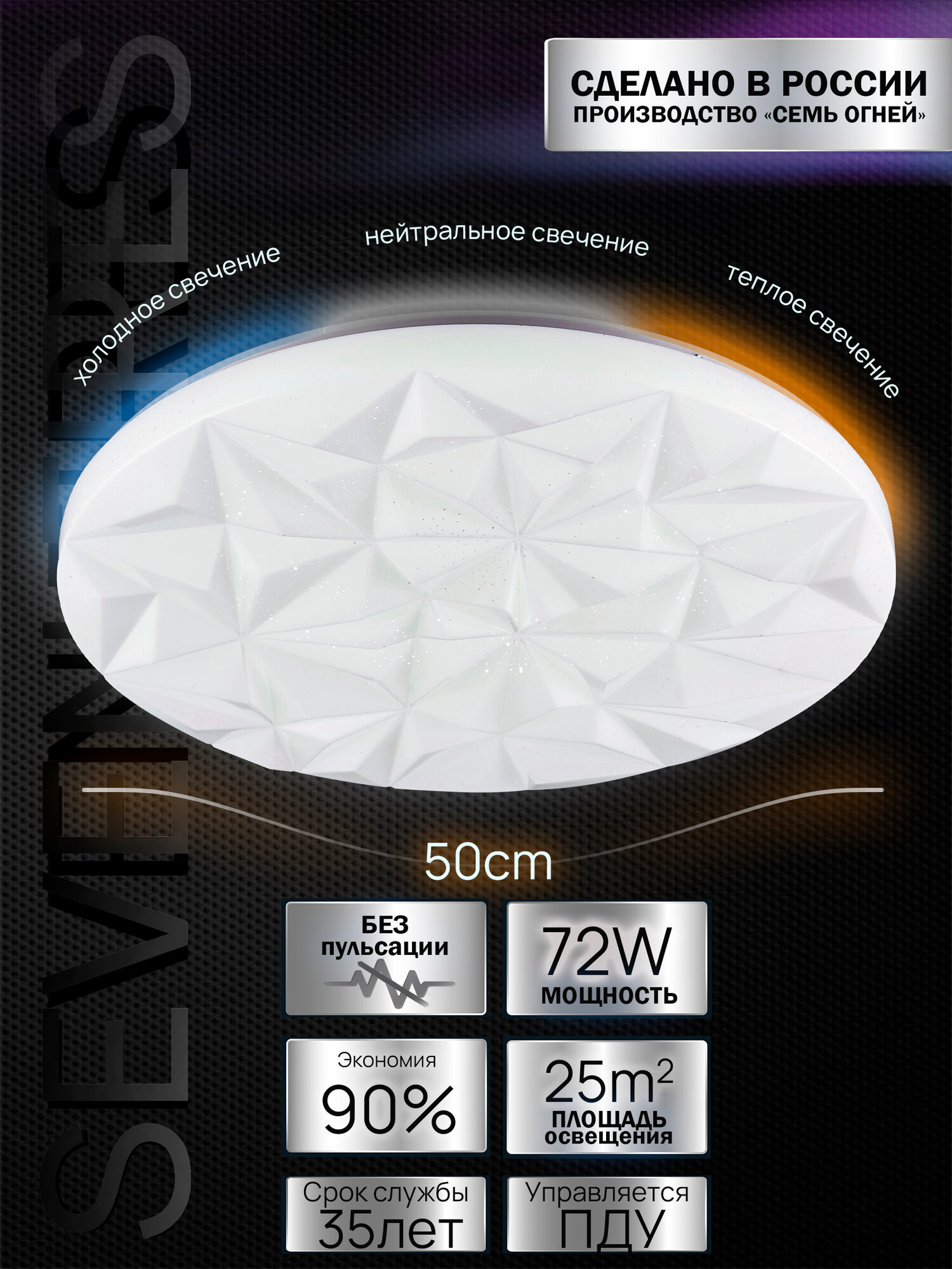 Люстра потолочная светодиодная с пультом Семь Огней, белая, до 25 кв. м. информация: