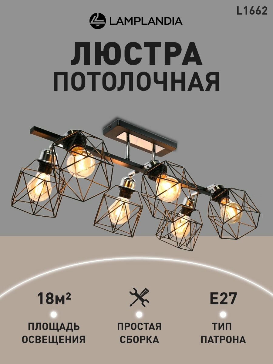 10 цен на Люстра потолочная Lamplandia L1662 IVIKA LINE BLACK, E27*6 макс 40Вт