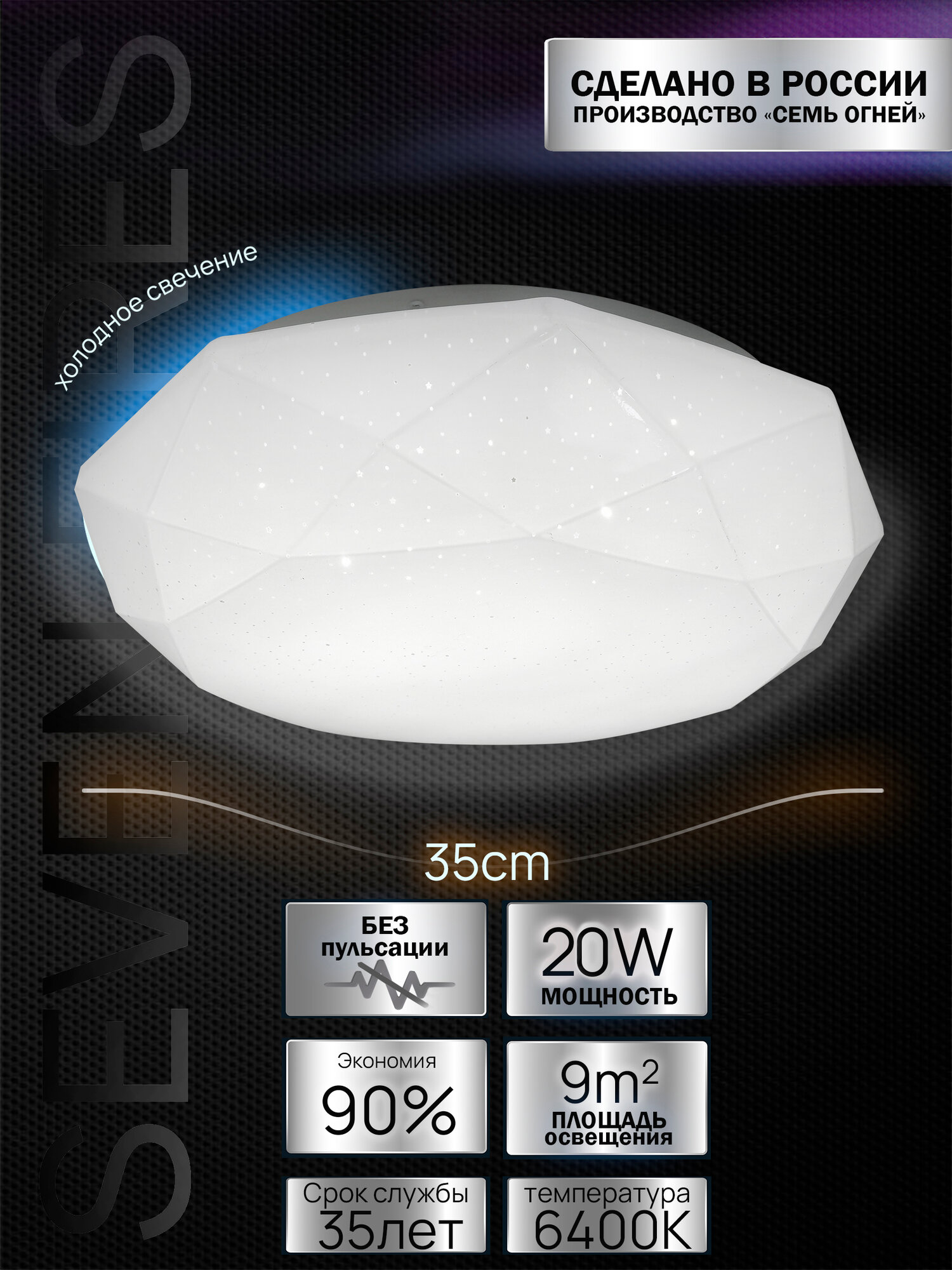 Люстра потолочная светодиодная Семь Огней, белая до 8 кв. м. информация: