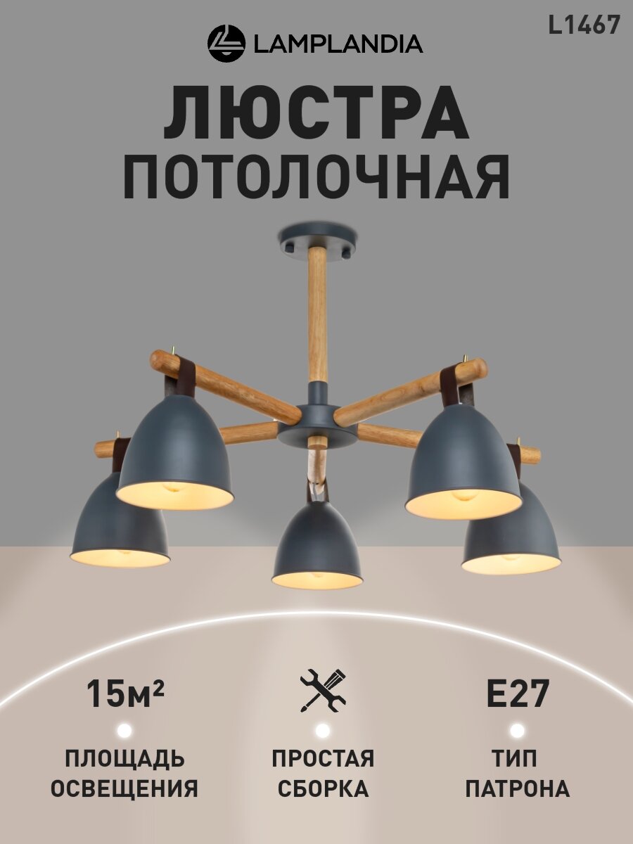 Люстра потолочная Lamplandia L1467 DECIZE GREY, Е27*5 макс 40Вт информация: