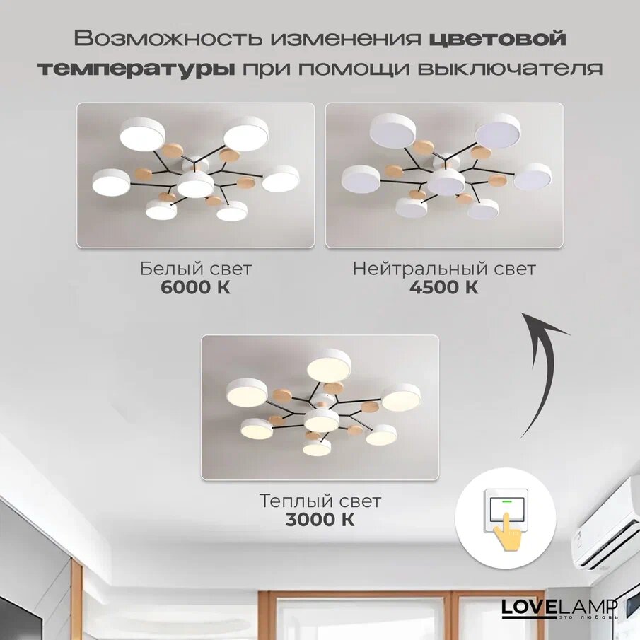 Скандинавский потолочный светильник / люстра светодиодная, 72 Вт, белый информация: