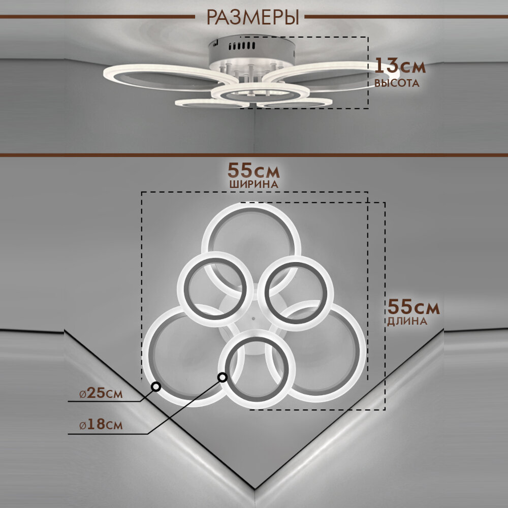 Отзывы на Люстра потолочная светодиодная SVK с пультом и диммером, белая, кольца, 108W