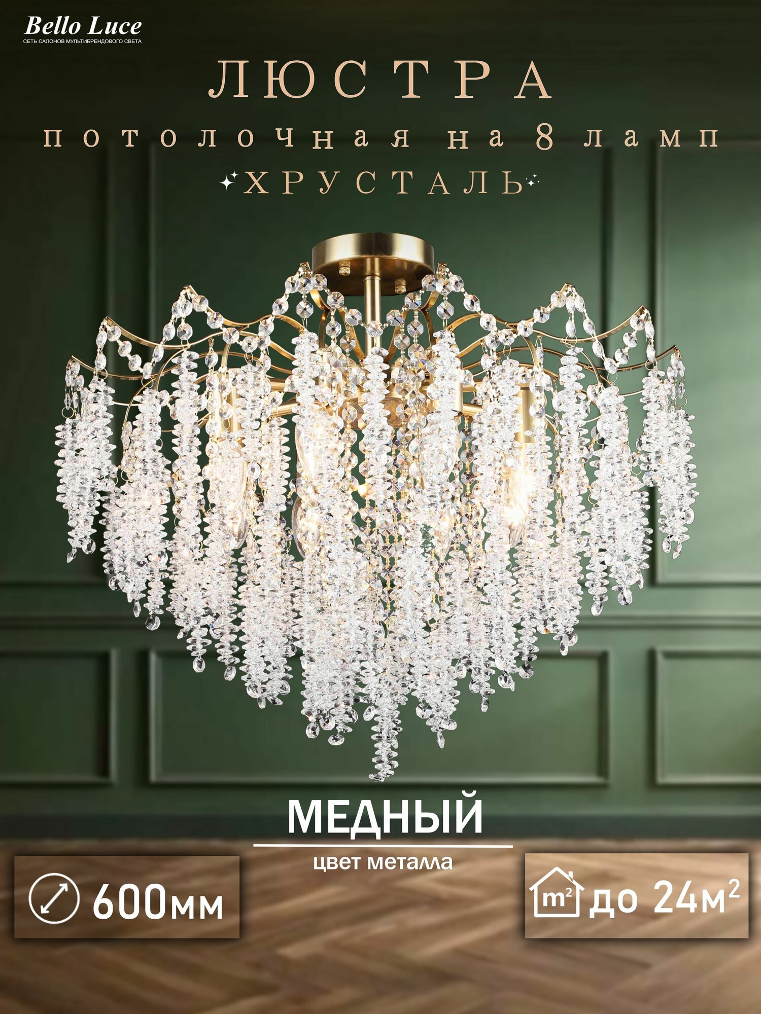 10 цен на Люстра хрустальная медь потолочная с прозрачными хрустальными подвесками на 8 ламп E14