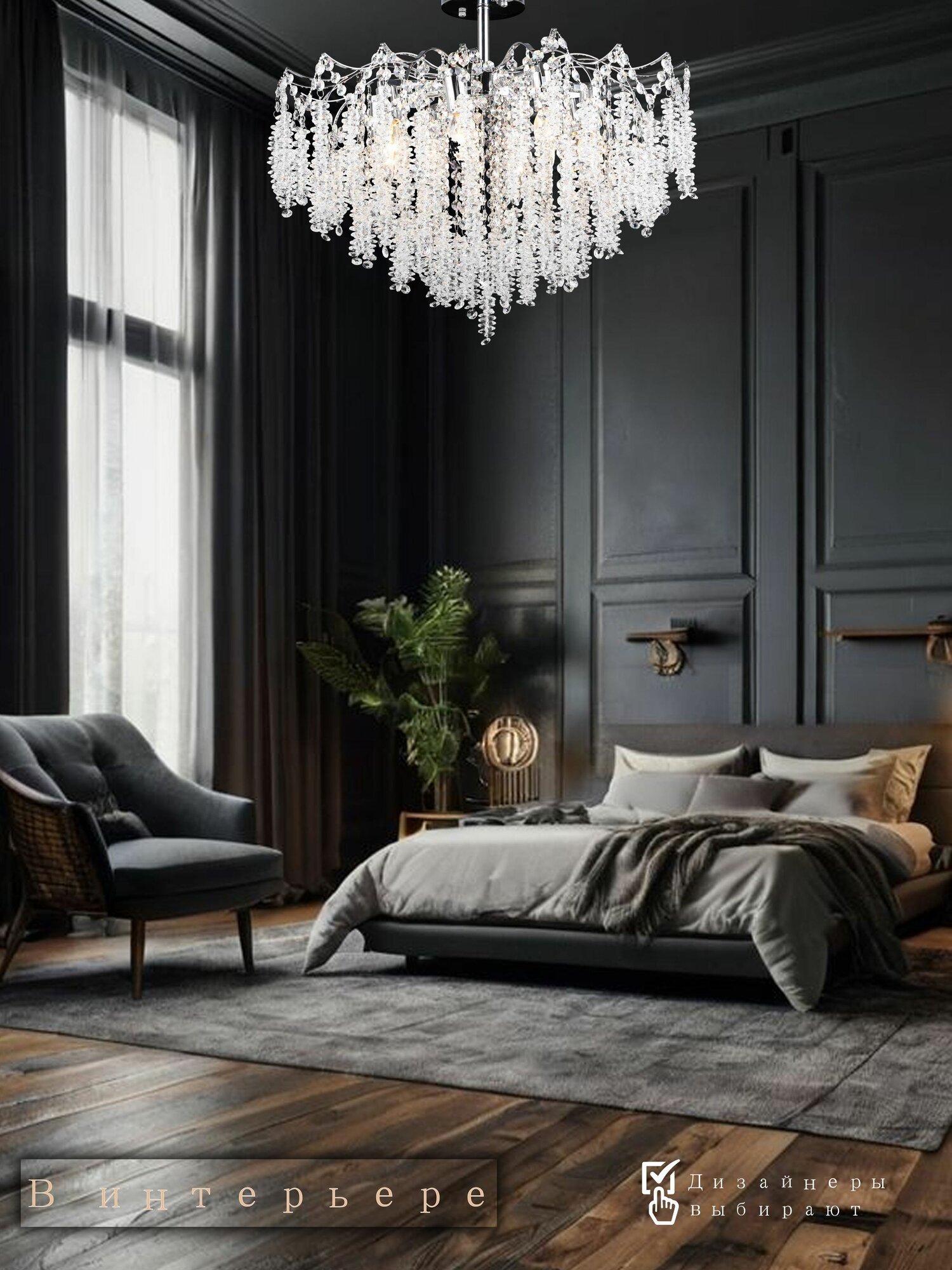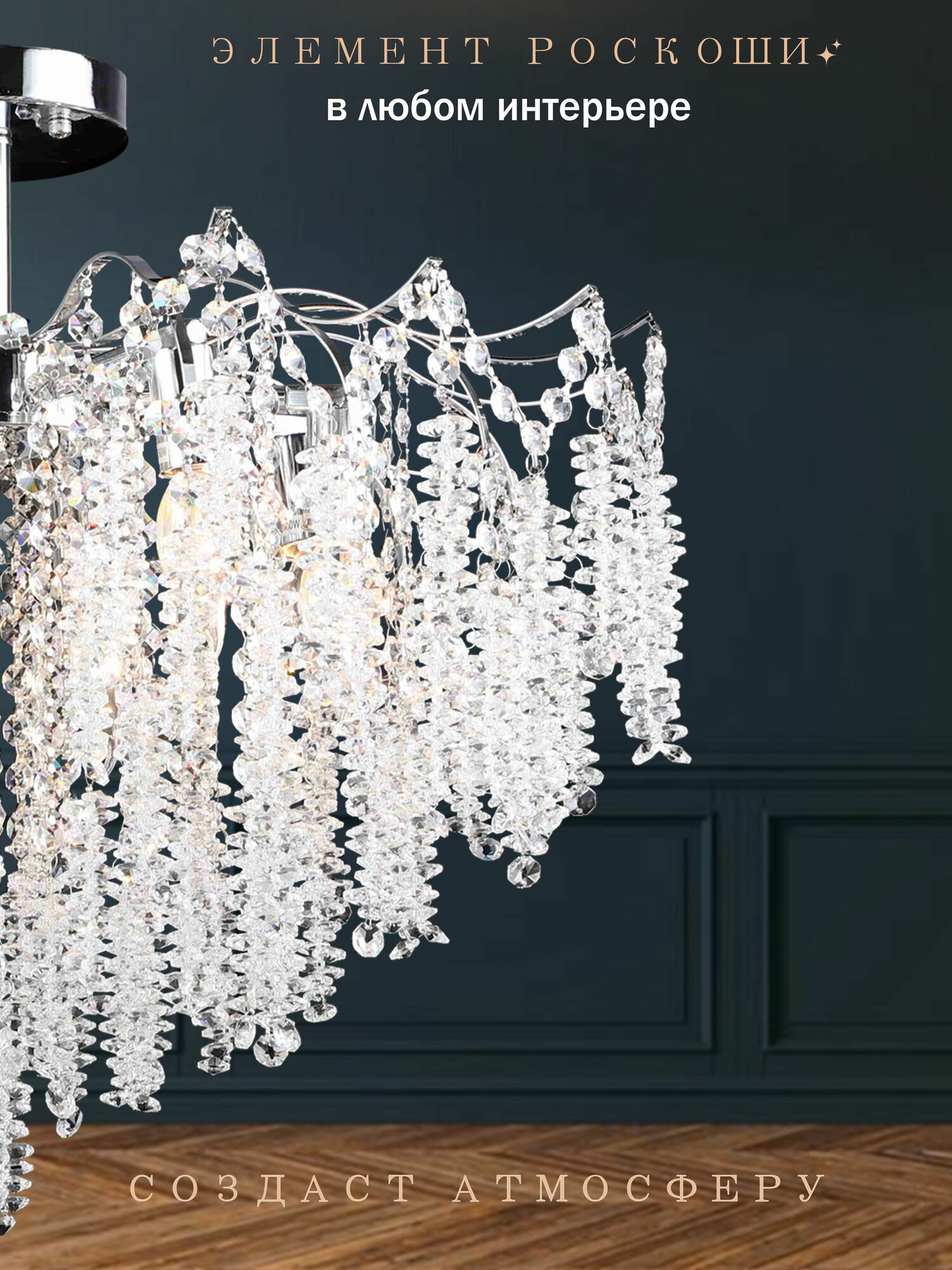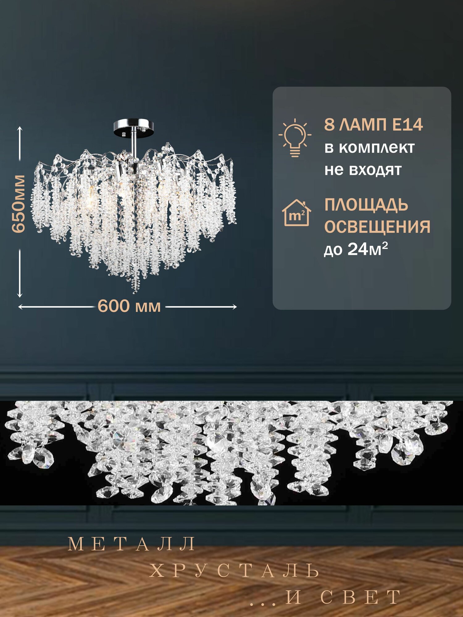 Отзывы на Люстра хрустальная хром потолочная с прозрачными хрустальными подвесками на 8 ламп E14