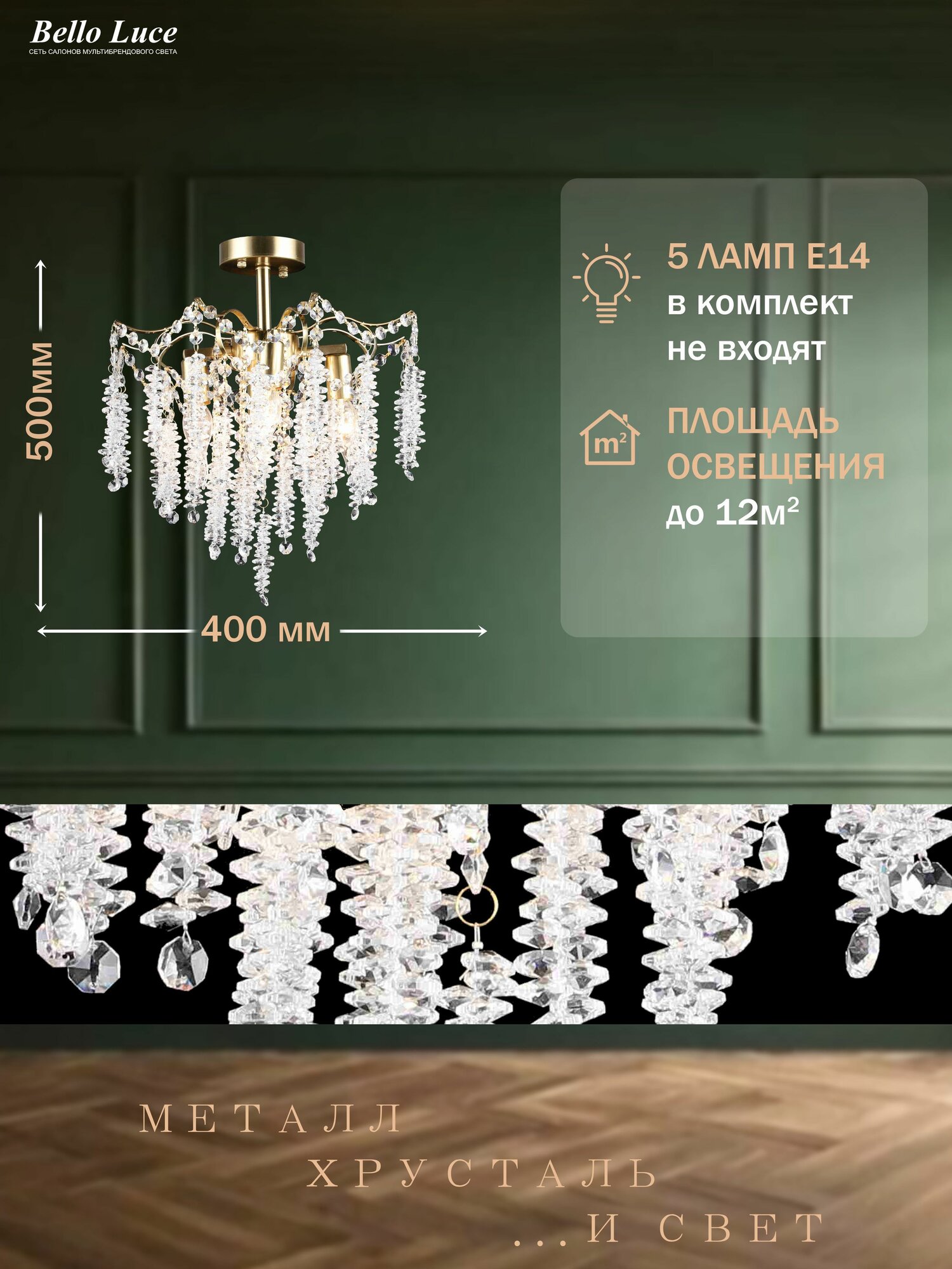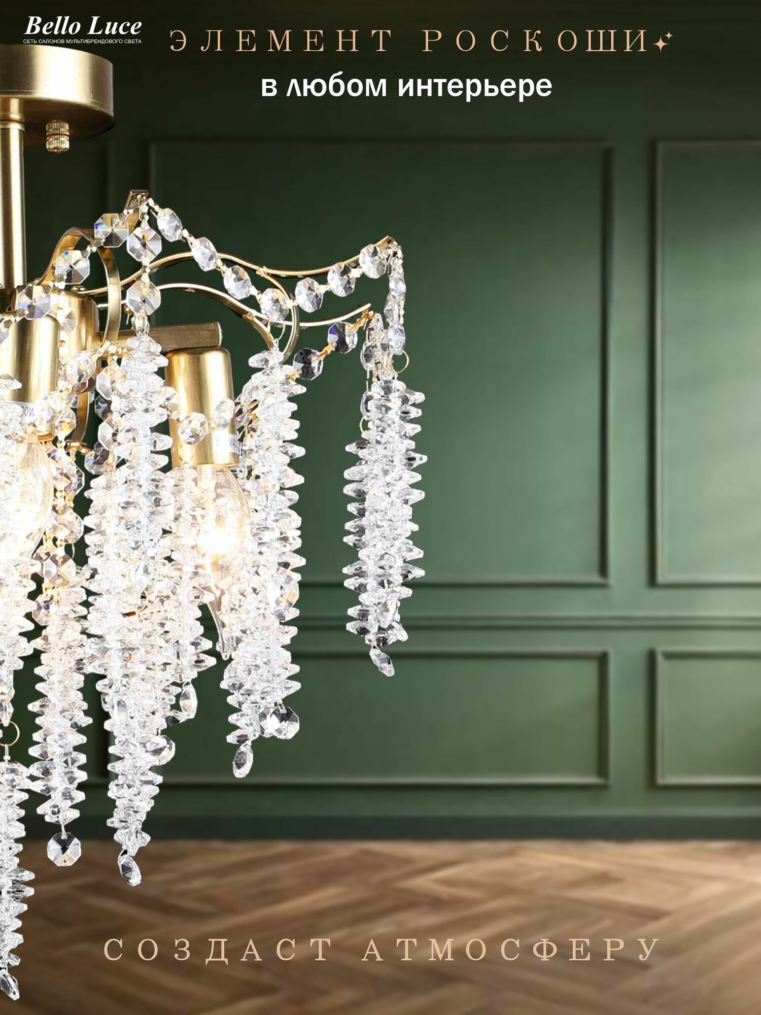10 цен на Люстра хрустальная медь потолочная с прозрачными хрустальными подвесками на 4 лампы E14