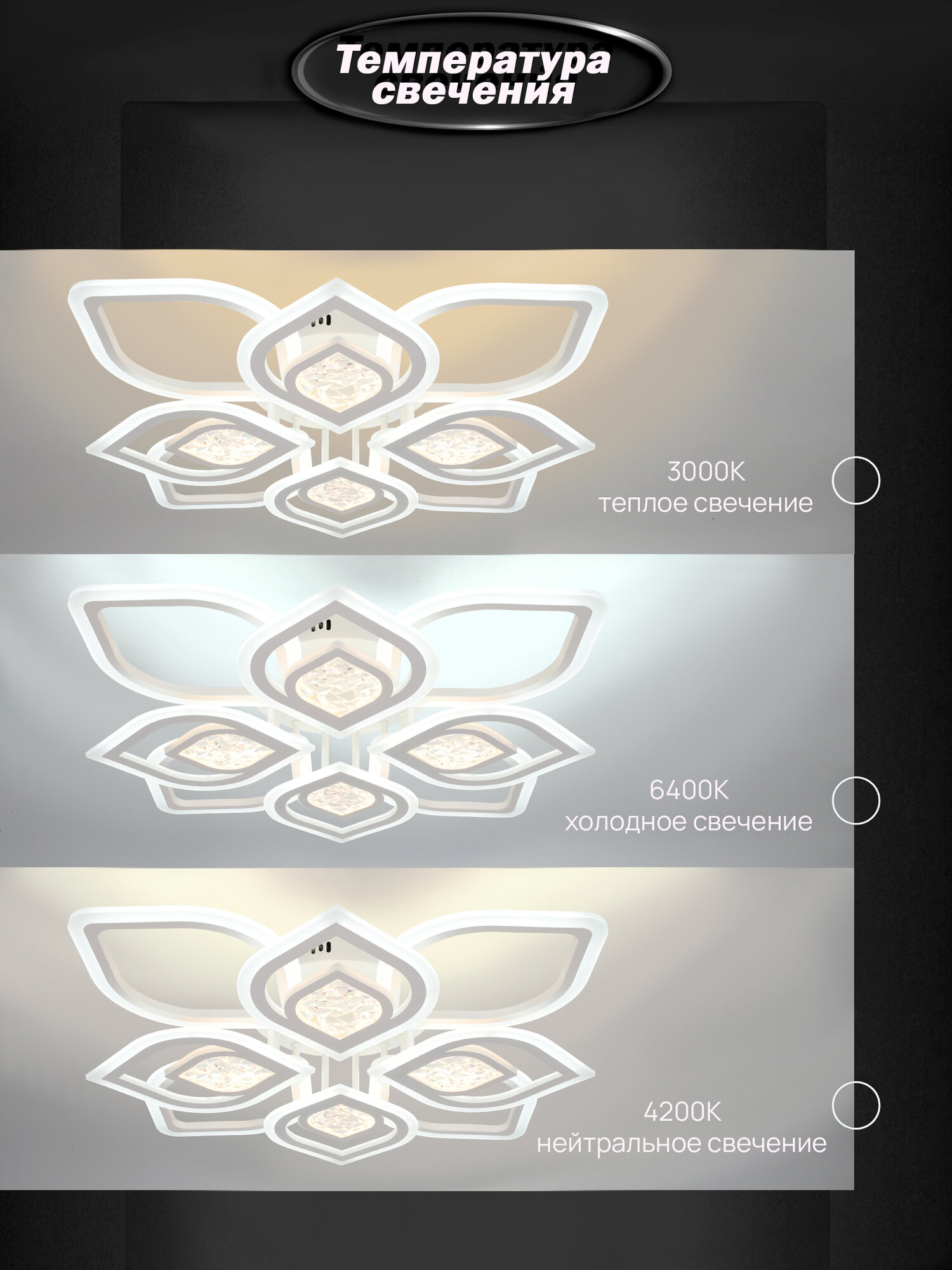 10 цен на Люстра потолочная светодиодная Семь Огней, белая с пультом, до 24 кв. м.