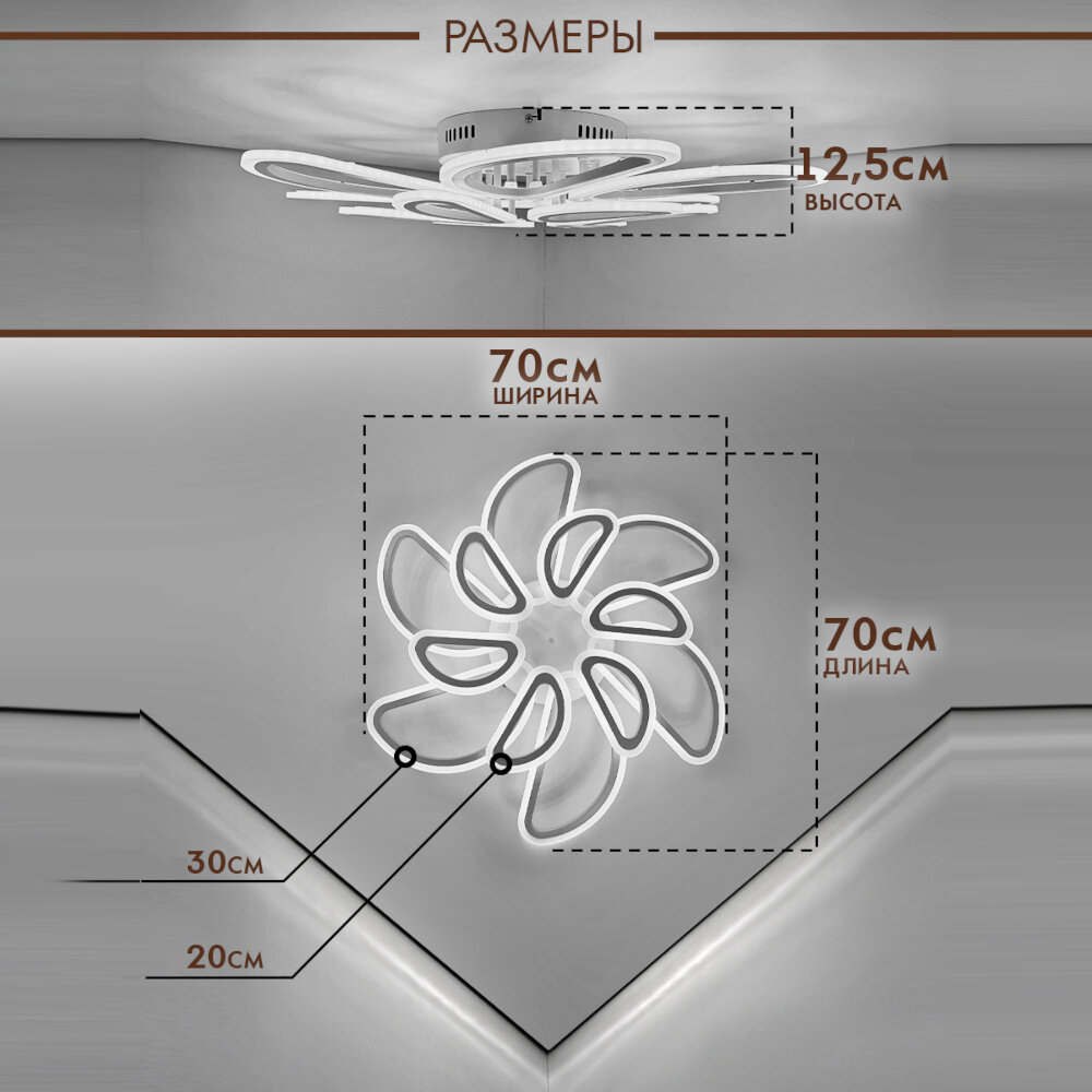 Люстра потолочная светодиодная с пультом и диммером, белая, овалы - лепестки, 204W информация: