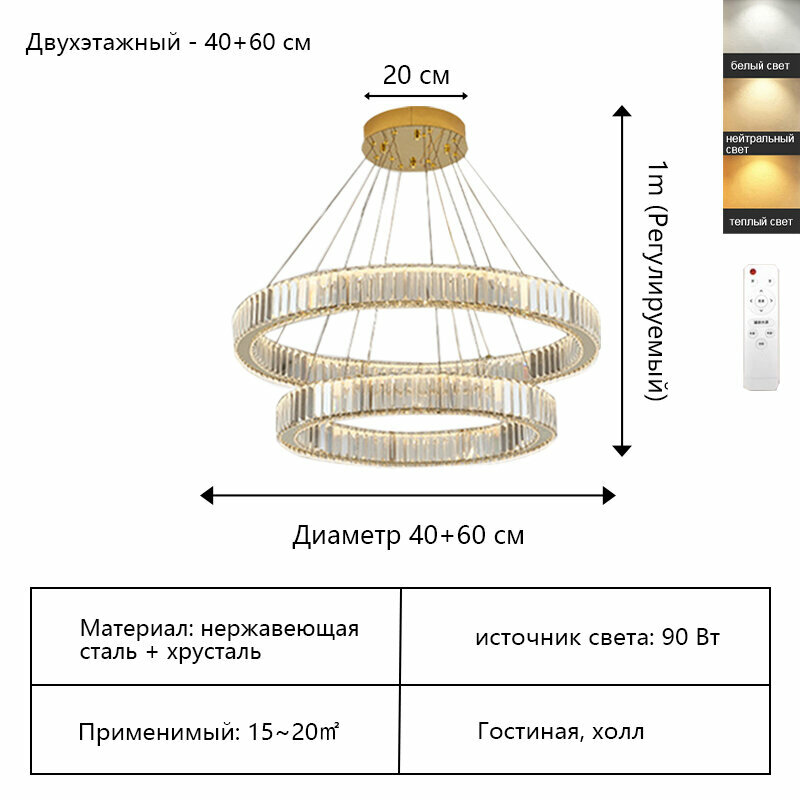 Люстра House Hallow "Infinity Crystal", LED, с пультом ДУ, площадь освещения 15 м², мощность 50Вт