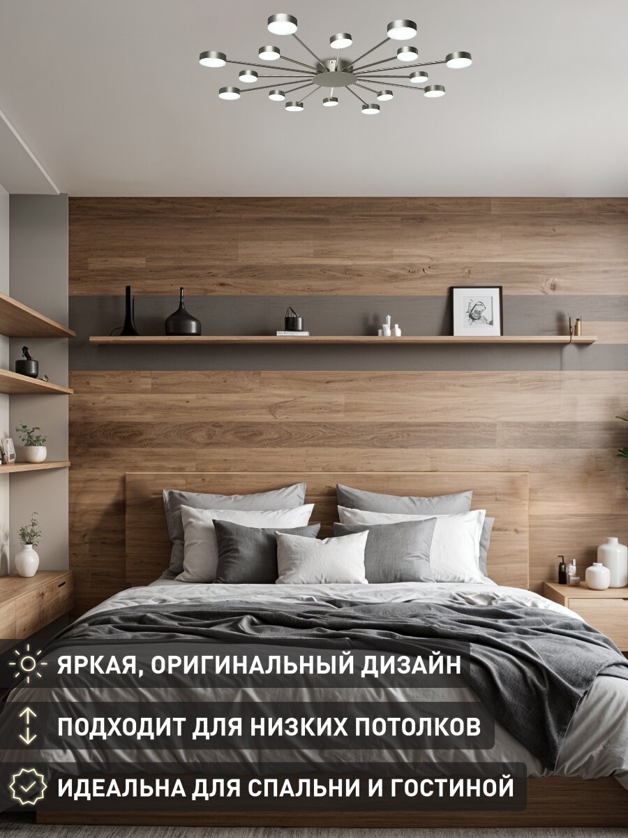 Отзывы на Люстра потолочная светодиодная Lamplandia L1584 ROIZ SILVER GREY, LED 16 (8*7Вт + 8*5Вт), 3 режима освещения