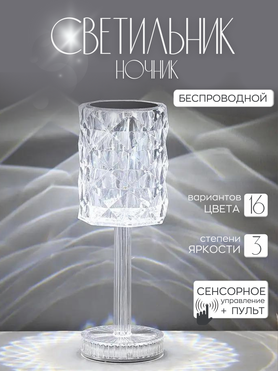 Беспроводная прозрачная настольная светодиодная лампа - ночник LED 4500К USB информация: