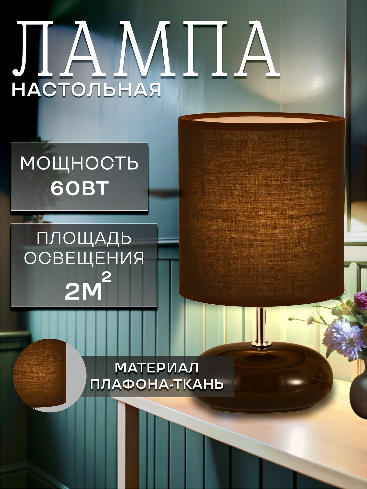 Светильник настольный Росток коричневый/коричневый абажур h276 1х60W E27 информация: