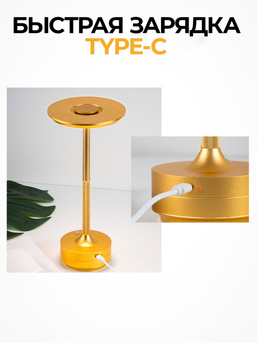 Настольная лампа интерьерная беспроводная светодиодная сенсорная K-8 золотая, 3W, декоративный регулируемый свет 1 800 ₽