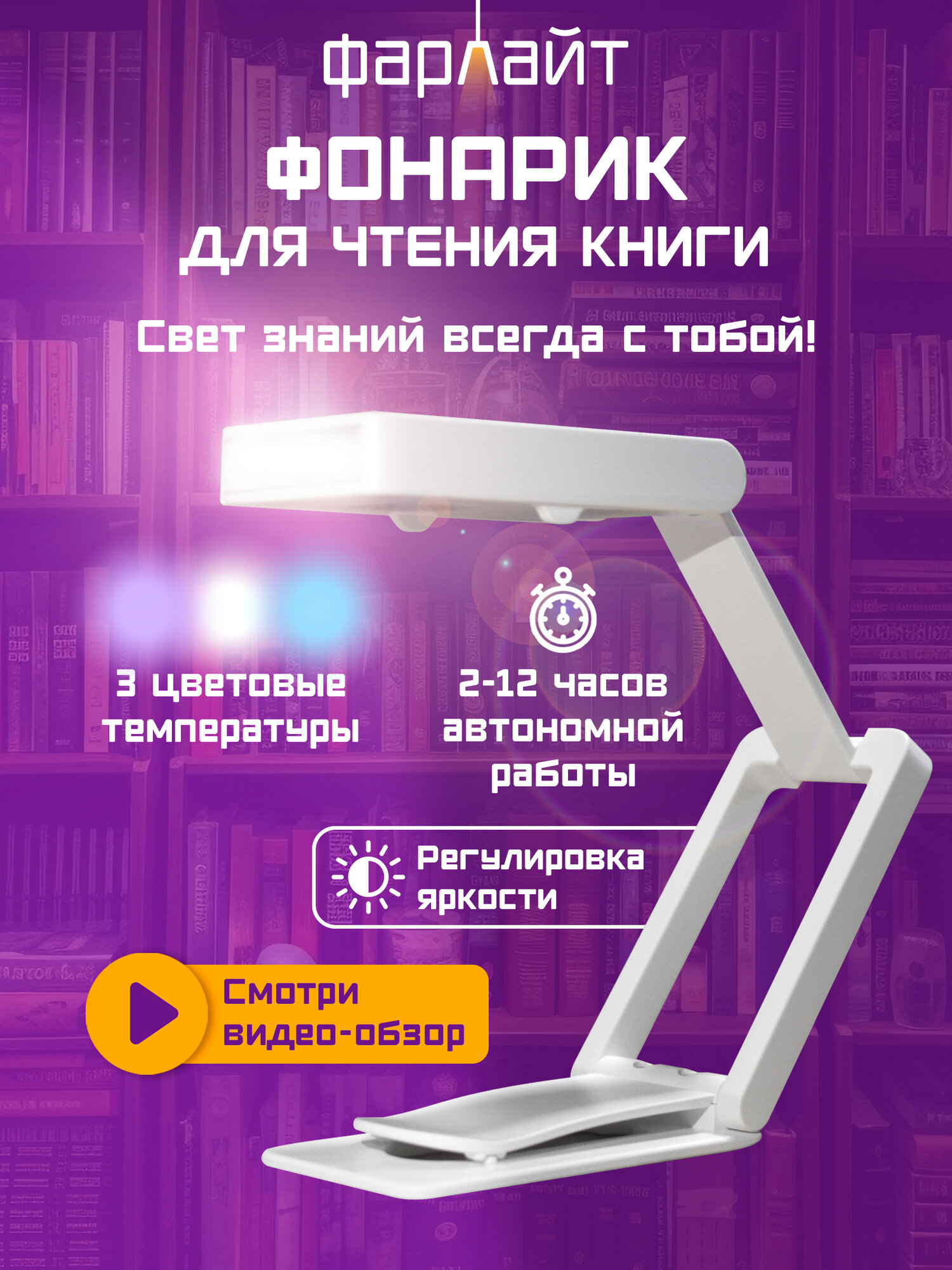 Отзывы на Фонарик-лампа Фарлайт, для чтения, на книгу, аккумулятор, сенсорное управление, 3 режима, белый