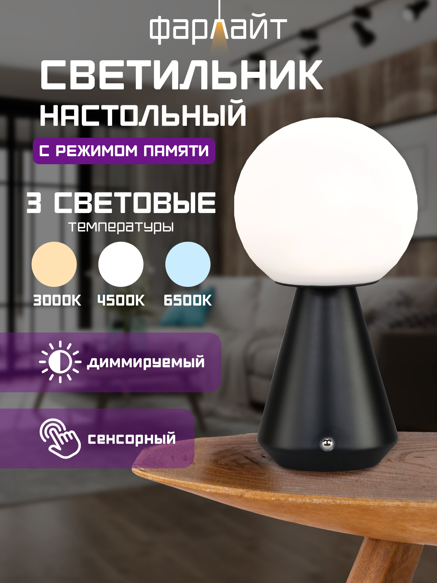 10 цен на Светильник светодиодный настольный аккумуляторный диммируемый "Конус" 170 лм 3000/4500/6500 К с сенсорной кнопкой черный