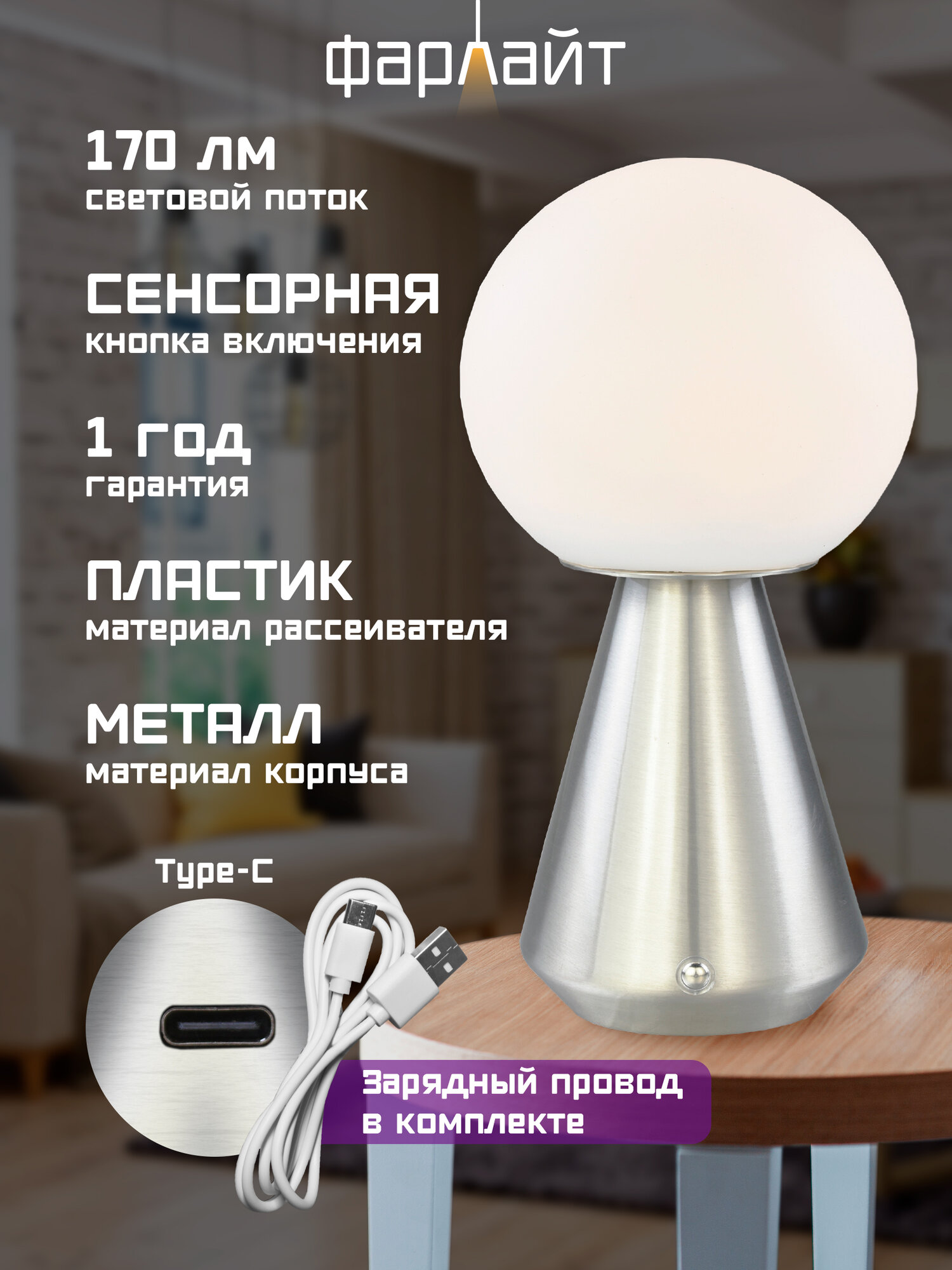 Отзывы на Светильник Фарлайт Конус, настольный, аккумуляторный, пластиковый плафон, серебристый