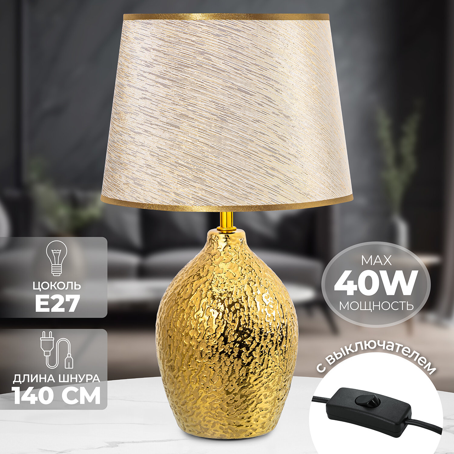 0 отзывов, средняя оценка 0. Чтобы купить «Настольная лампа 25х25х42,5 см Elan Gallery Мятое золото с золотистым круглым абажуром» по лучшей цене мы сканируем авито, алиэкспресс, маркет, озон, савеловский, плеер, горбушку, беру, официальные сайты и находим минимальную. Администрация не несет ответсвенность актуальность цен на Настольная лампа 25х25х42,5 см Elan Gallery Мятое золото с золотистым круглым абажуром, более подробно узнавайте на сайте магазина.