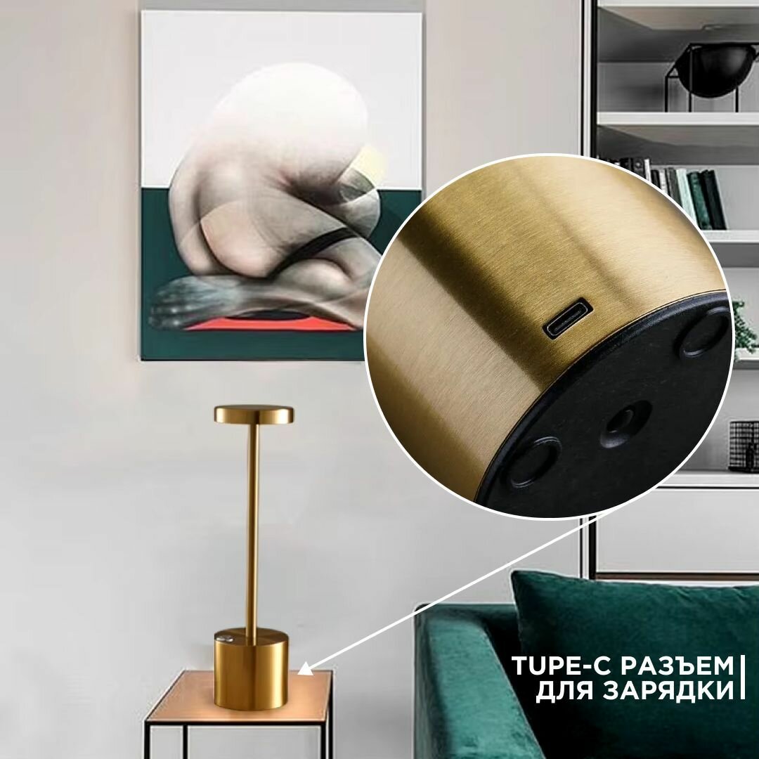 Лампа Sultanzone, настольная, беспроводная, с сенсорным управлением, LED, золотой цвет 2 509 ₽