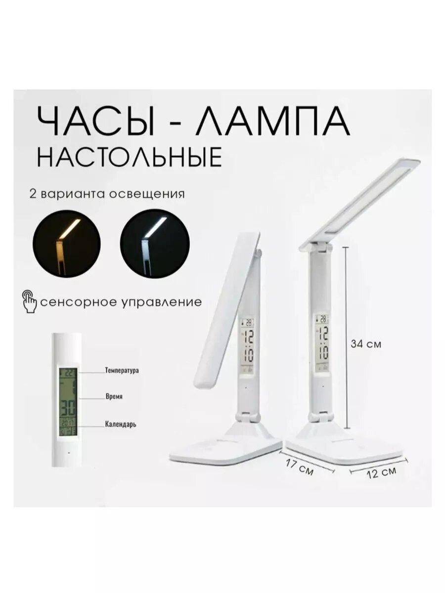 Настольная лампа светодиодная многофункциональная LED с будильником календарем беспроводной зарядкой часов