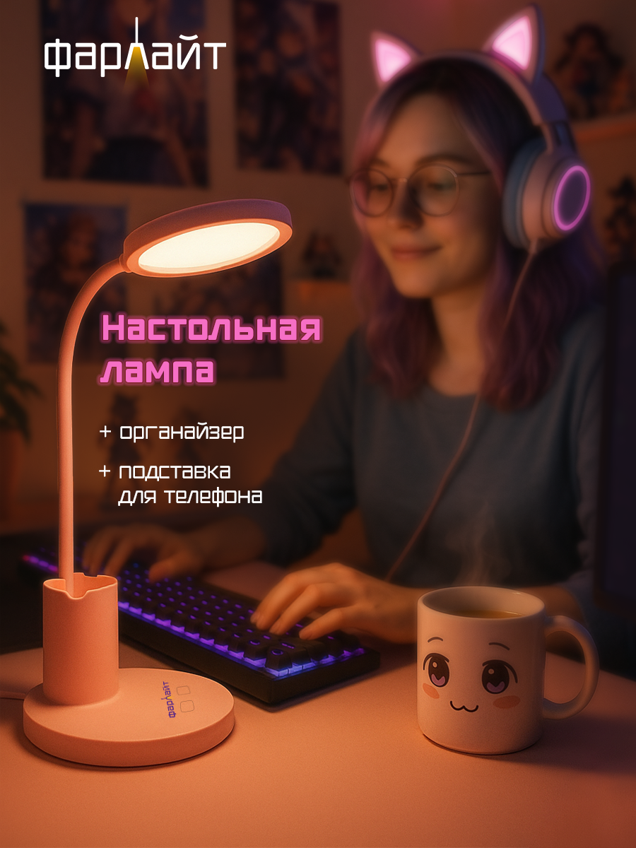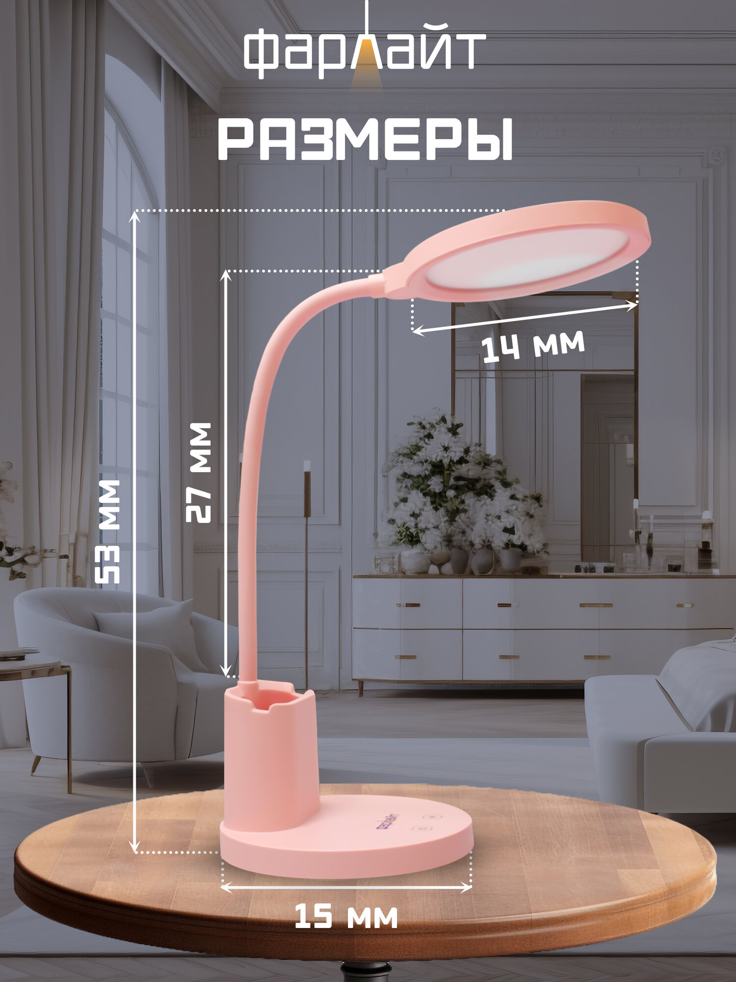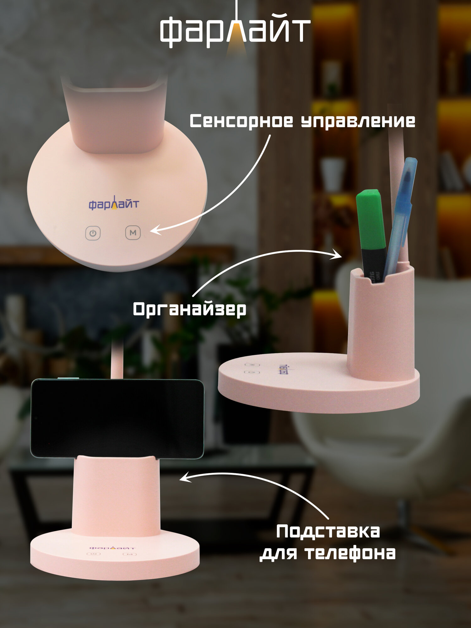 Отзывы на Светильник светодиодный настольный с органайзером на аккумуляторе, 12 Вт, три уровня яркости, 3500/4000/5000 К розовый Фарлайт