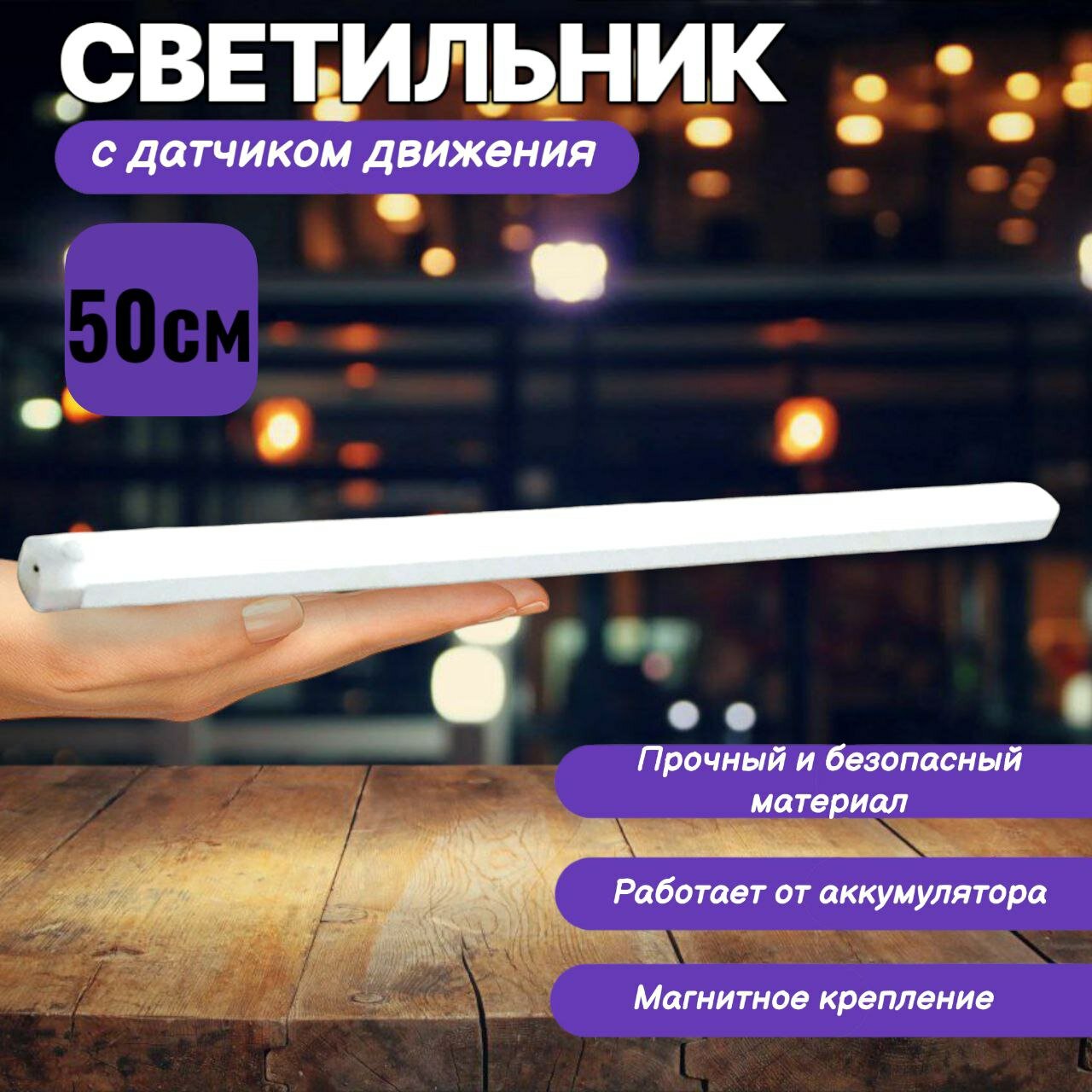 Светильник ночник светодиодный, c датчиком движения, на аккумуляторе, на магнитном креплении от VVO. Панель 500 мм. информация: