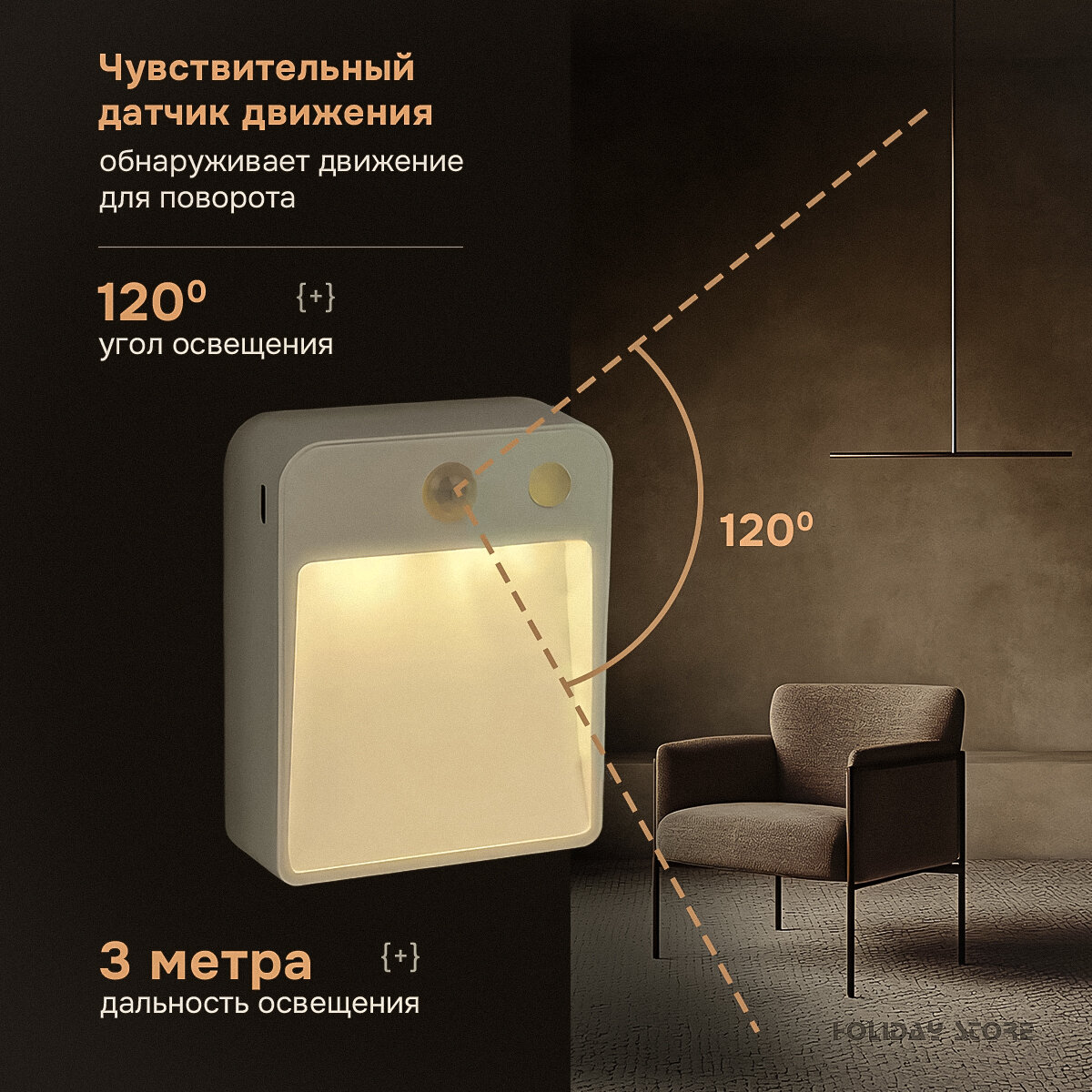 Ночник в розетку с датчиком движения батарейках информация: