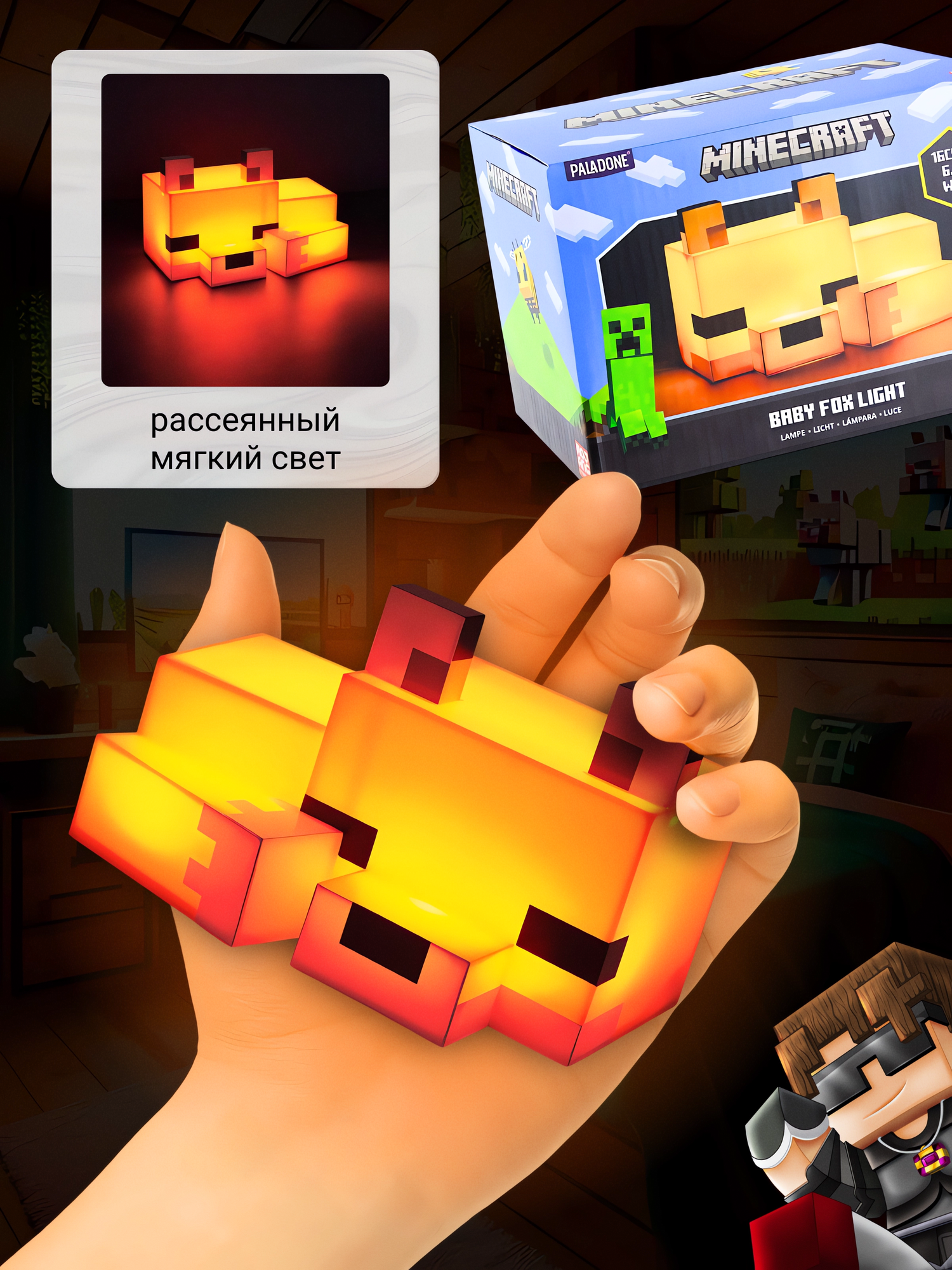 Отзывы на Ночник "Лиса Майнкрафт", ABS-пластик, беспроводная, оранжевый свет