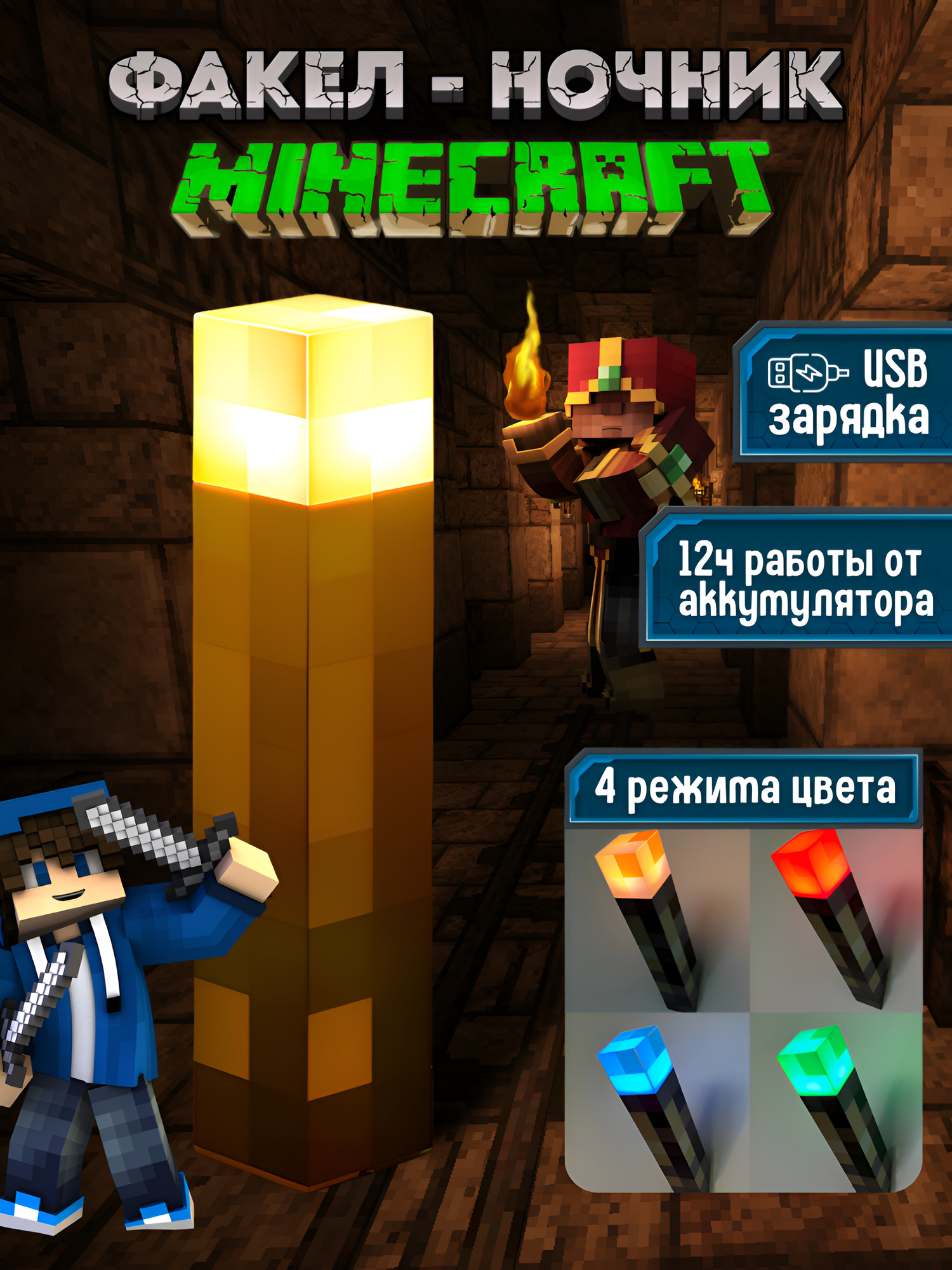 Светильник Майнкрафт факел Minecraft информация: