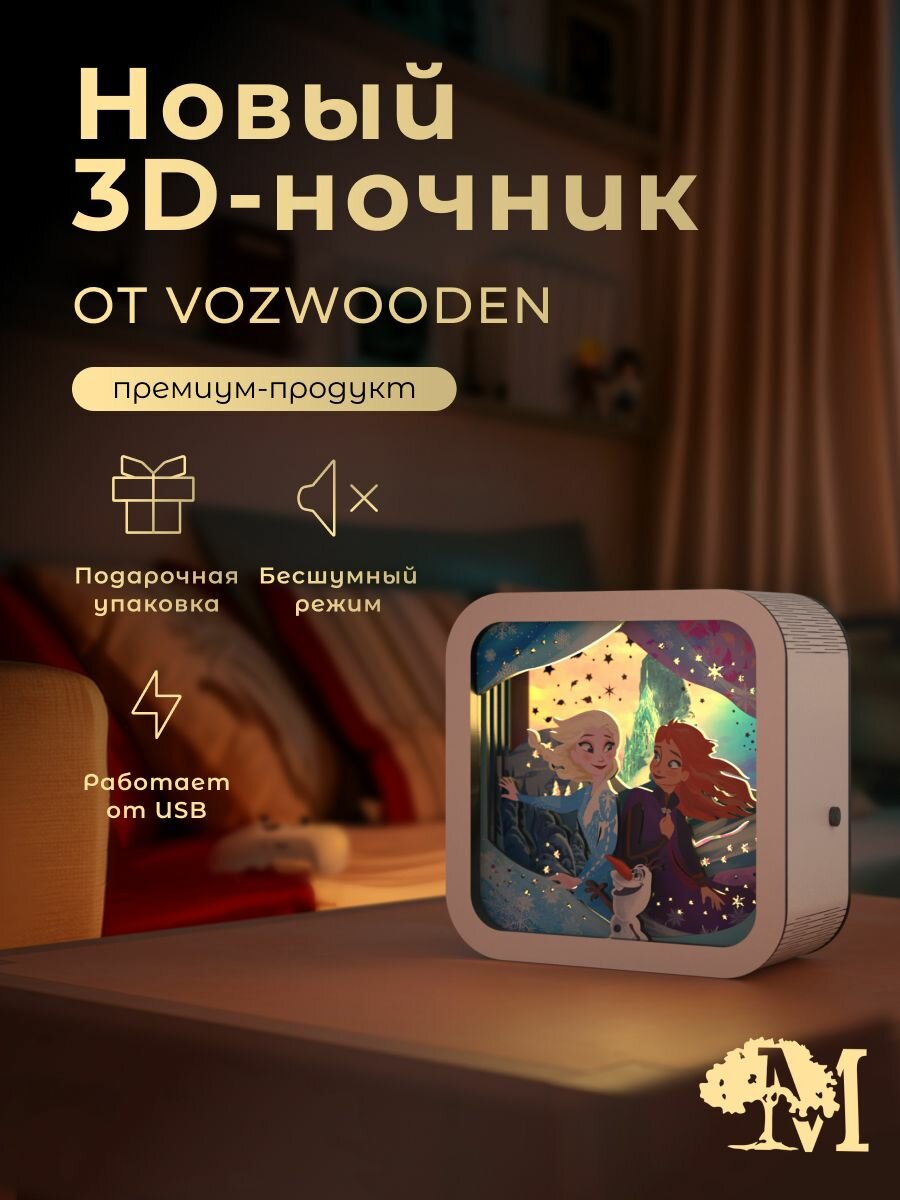 3D ночник картина Холодное Сердце / детский настольный 3Д светильник от VozWooden информация: