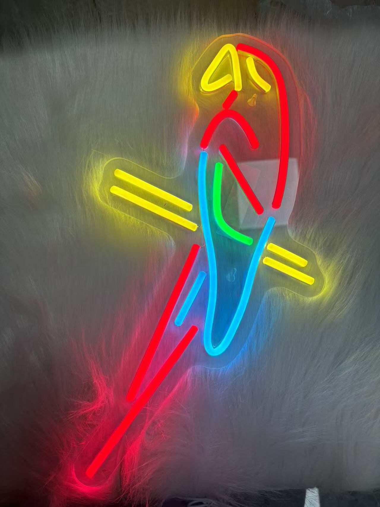 Неоновая вывеска-ночник, USB светильник попугай, с держателями для крепления информация: