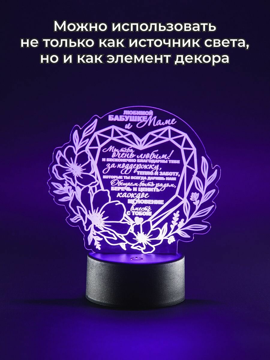 Ночник "Любимой бабушке и маме" Подарок бабушке на день рождения, 8 марта, юбилей. информация: