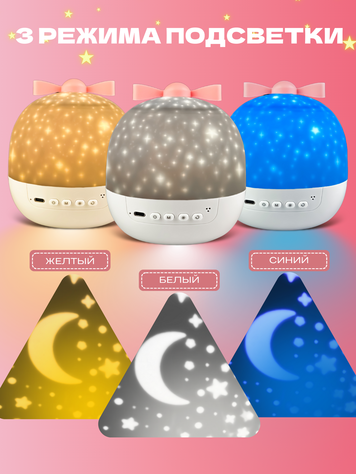 10 цен на Ночник - проектор WH-E16 "Мечта" с Bluetooth, 6 сменных проекций, 3 цветовых режима + смешанный режим, с ДУ "Включай"