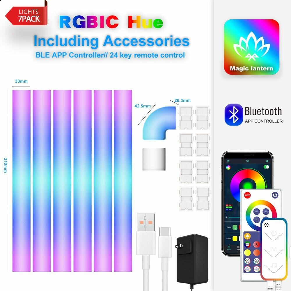 Отзывы на Светильник настенный модульный (6 прямых модулей + 1 угловой), умная RGB панель, неоновые лампы со светомузыкой