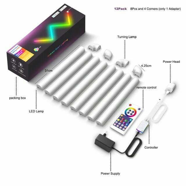 Отзывы на Светильник настенный модульный (8 прямых модулей + 4 угловых), умная RGB панель, неоновые лампы со светомузыкой
