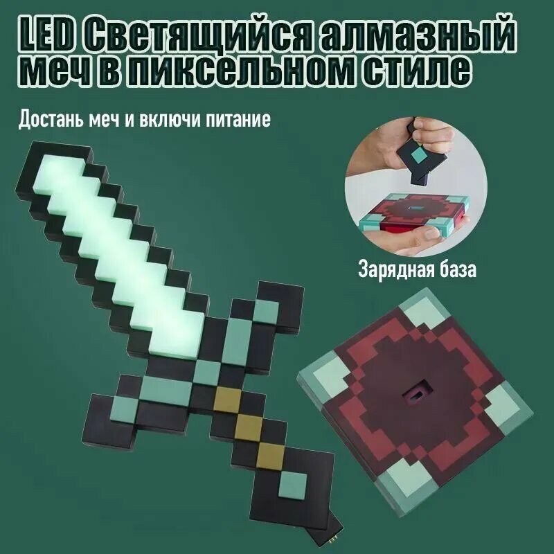 10 цен на Светильник Майнкрафт - Алмазный меч, ночник детский из игры Minecraft, 7 цветов