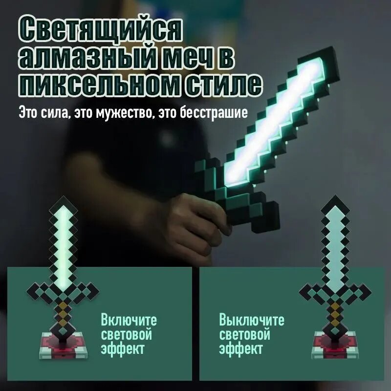 Отзывы на Светильник Майнкрафт - Алмазный меч, ночник детский из игры Minecraft, 7 цветов
