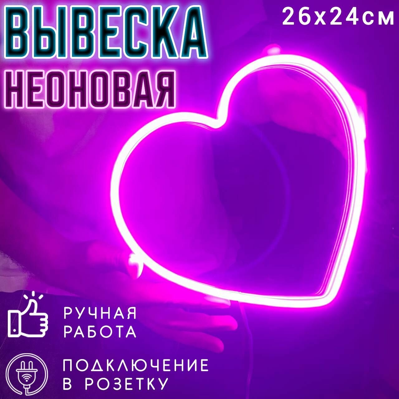 Неоновая вывеска Сердце розовое / Светильник декоративный, 26 х 24 см. информация: