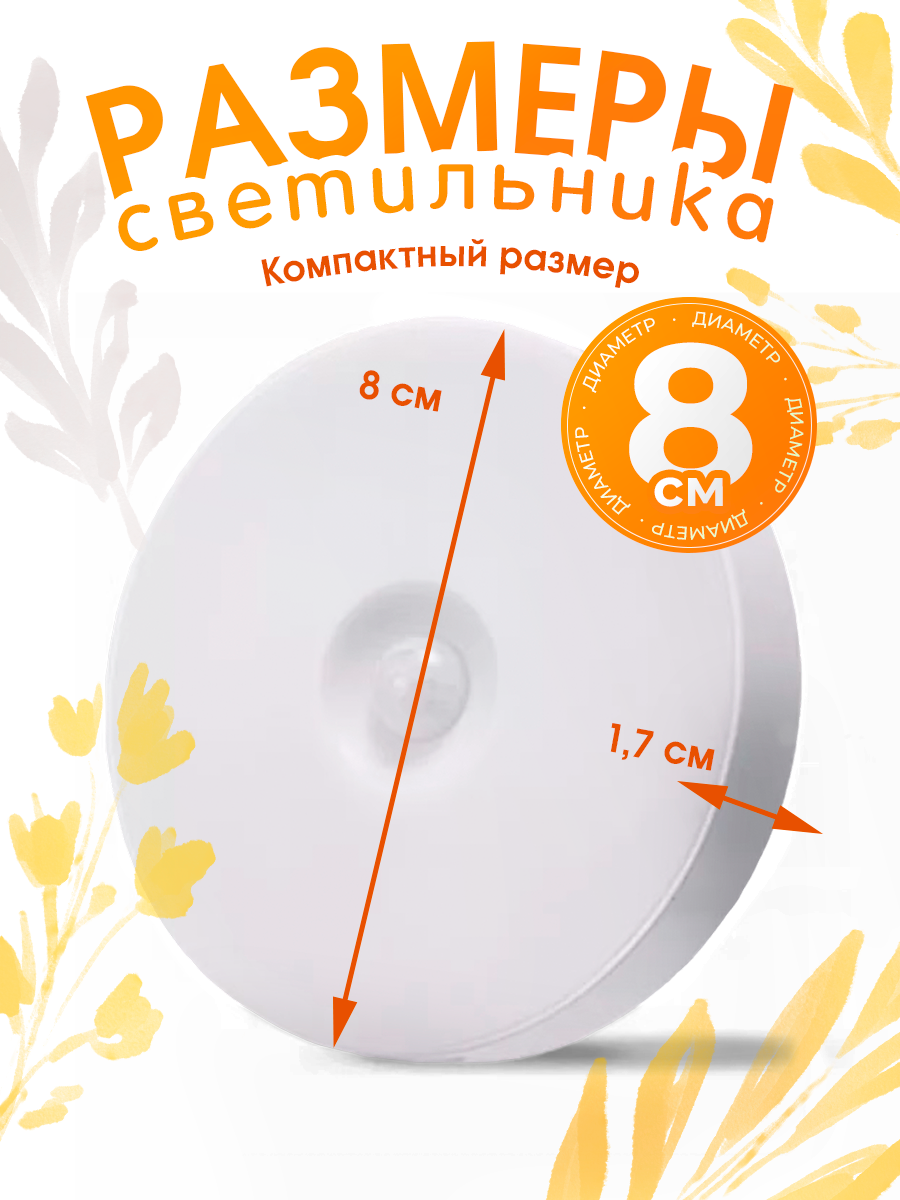 Светильник с датчиком движения в шкаф, умный настенный фонарь на аккумуляторе. тёплый свет. информация: