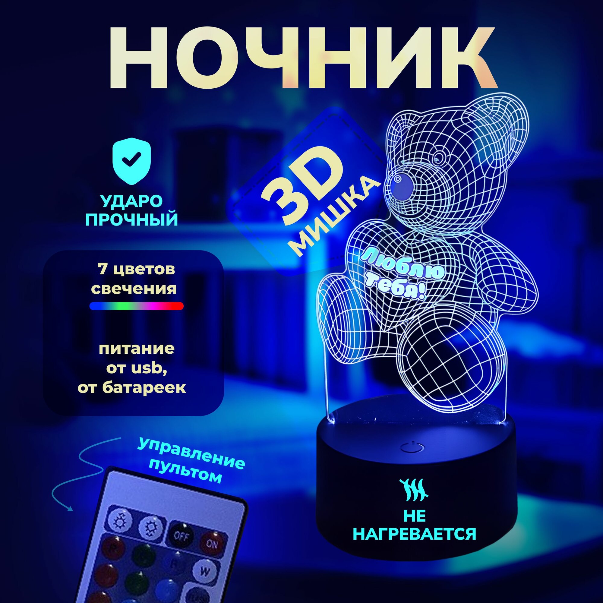 Отзывы на Светильник - ночник детский 3D подарок "Мишка с сердцем - Я люблю тебя"