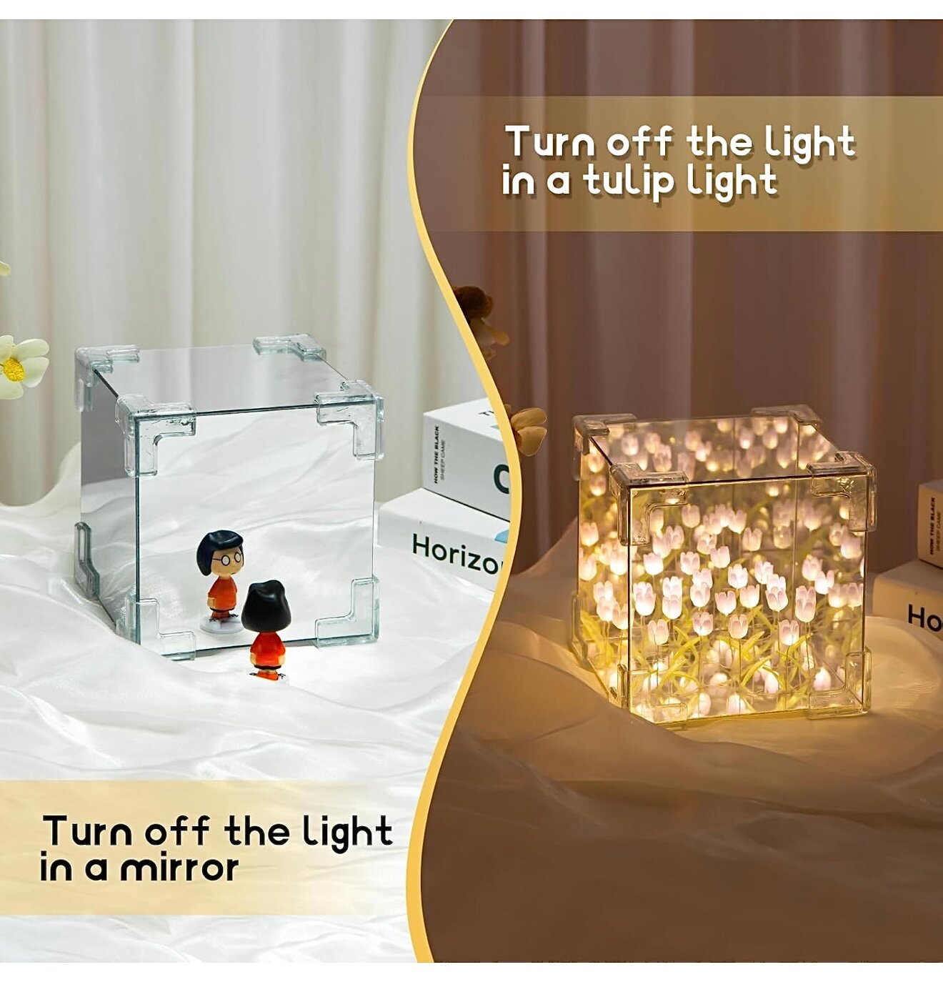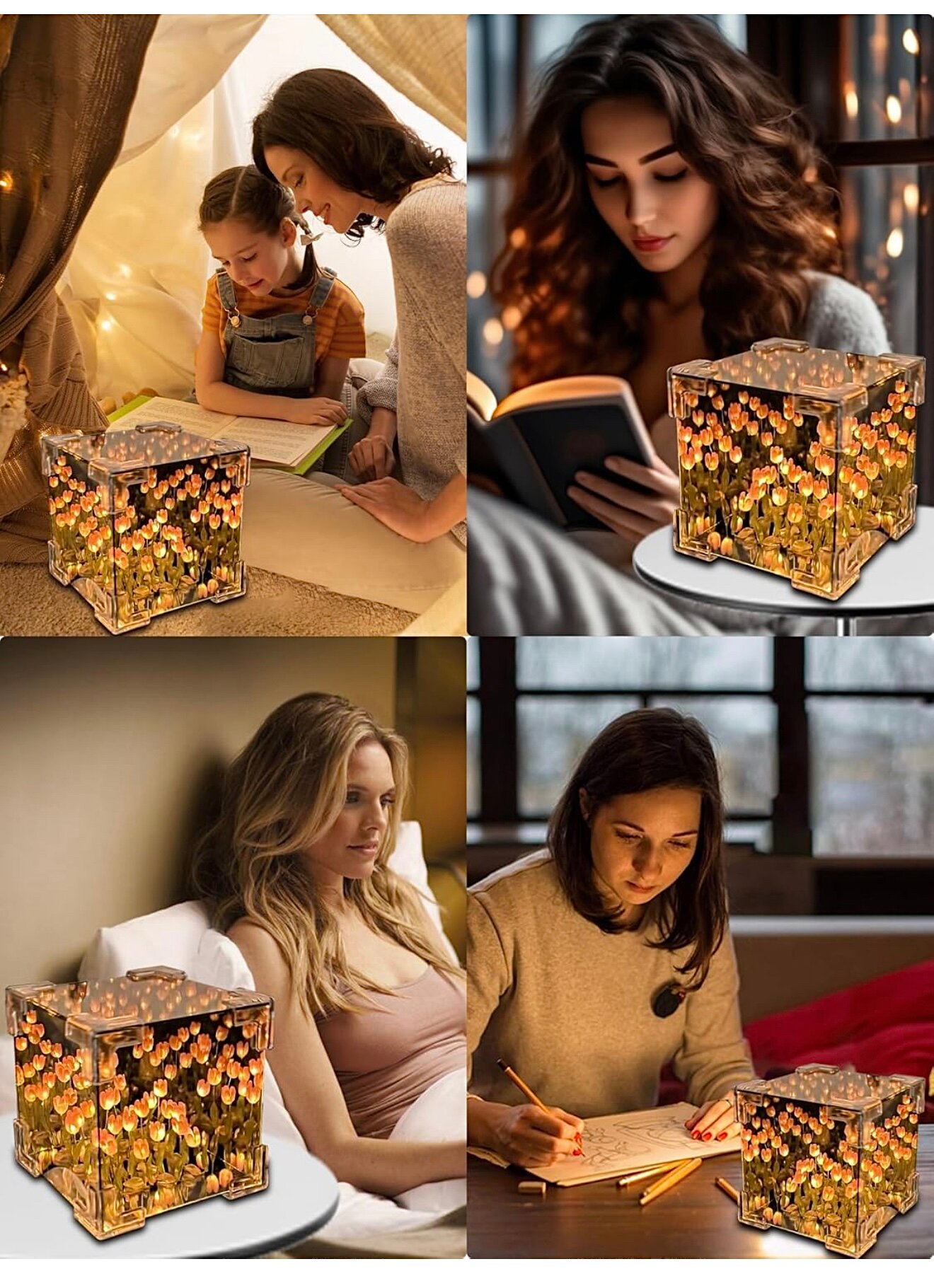 Отзывы на Ночник "Ночник куб с тюльпанами", прозрачный, розовый и салатовый