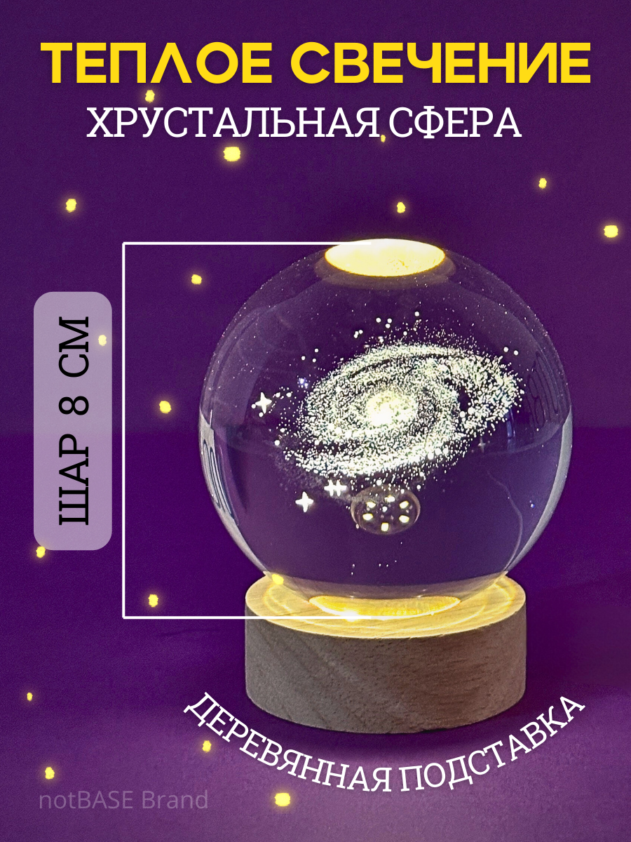 10 цен на Светильник - ночник детский 3D "Галактика" космос стеклянный шар 8см