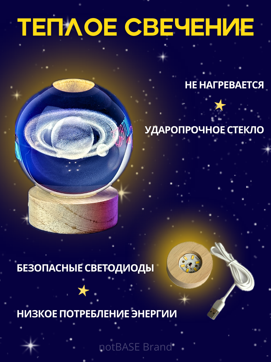 Светильник - ночник детский 3D "Сатурн" космос стеклянный шар 8см информация: