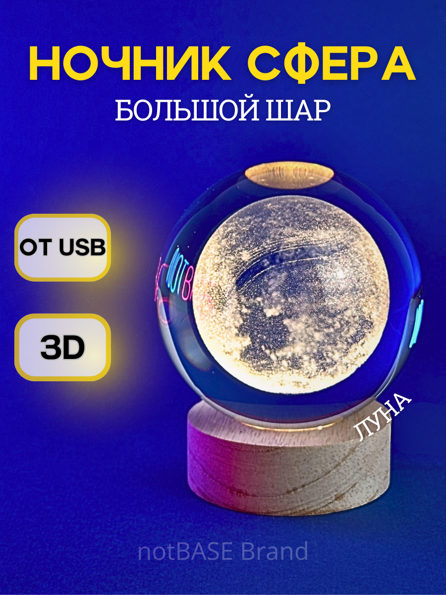Отзывы на Светильник - ночник детский 3D "Луна" космос стеклянный шар 8см