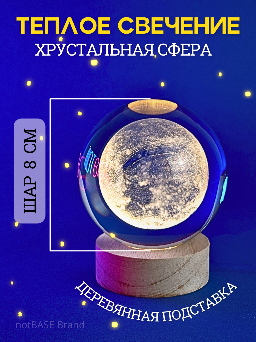 Светильник - ночник детский 3D "Луна" космос стеклянный шар 8см информация: