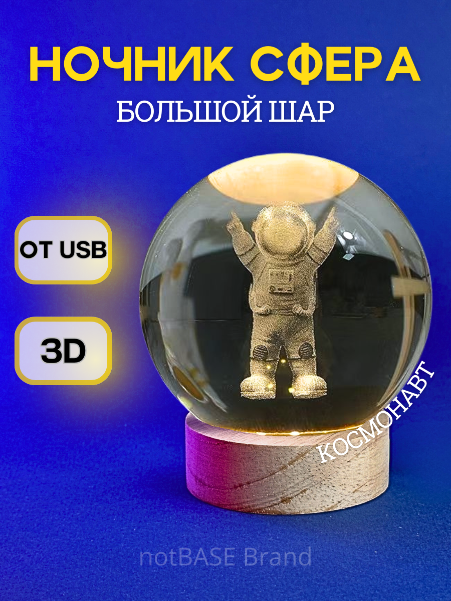 Отзывы на Светильник - ночник детский 3D "Космонавт" космос стеклянный шар 8см